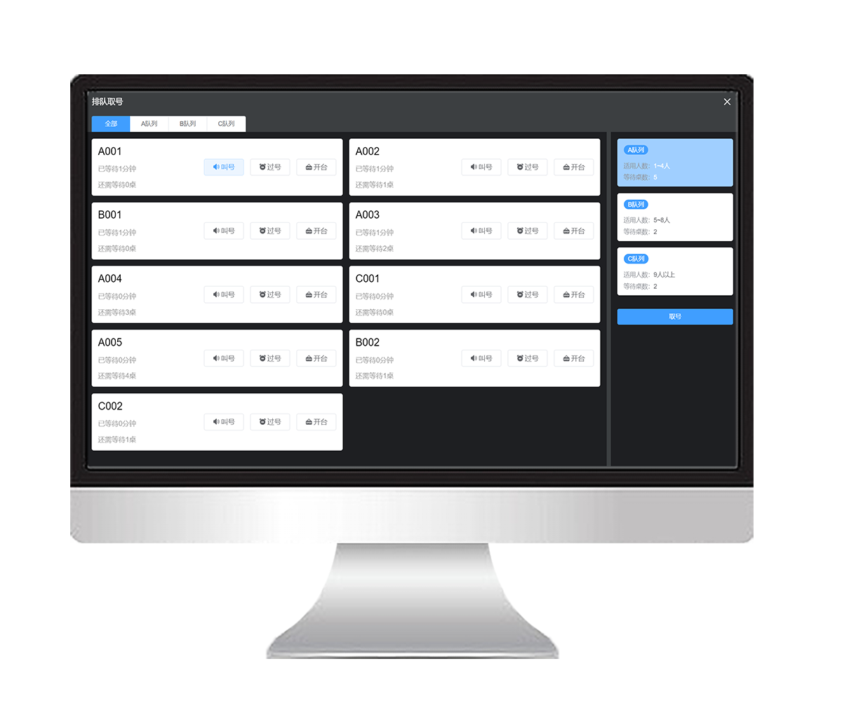 排队管理:顾客到店后,可通过该系统获取排队序列号。系统会根据餐厅内的就餐情况,自动为顾客安排排队顺序。