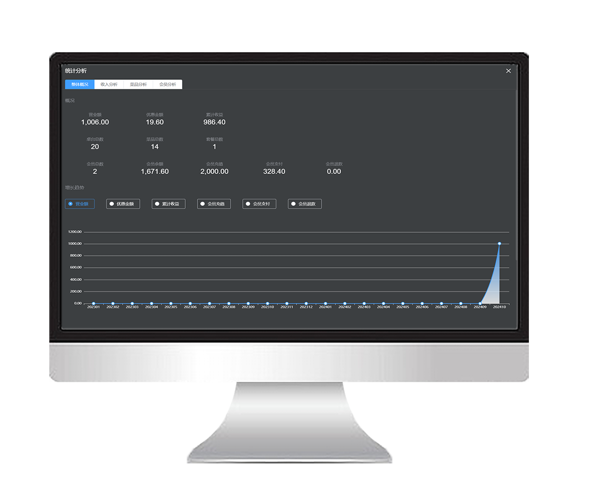 可对数据进行实时统计,具备会员充值功能
