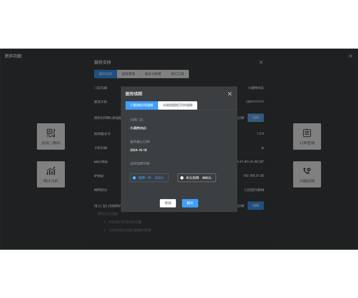 永久授权:购买该系统永久授权后,餐厅可以获得永久的使用授权。